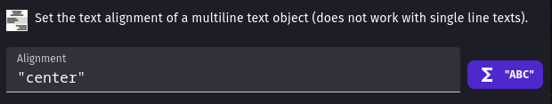The process for aligning text to other objects is similar. Consider placing a text object on a button. Use the Center position action with X and Y values OBJECT.CenterX()