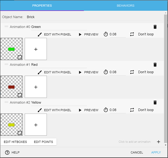 As the ball bounces off bricks, it should destroy them. Destroying an object in GDevelop is easy.