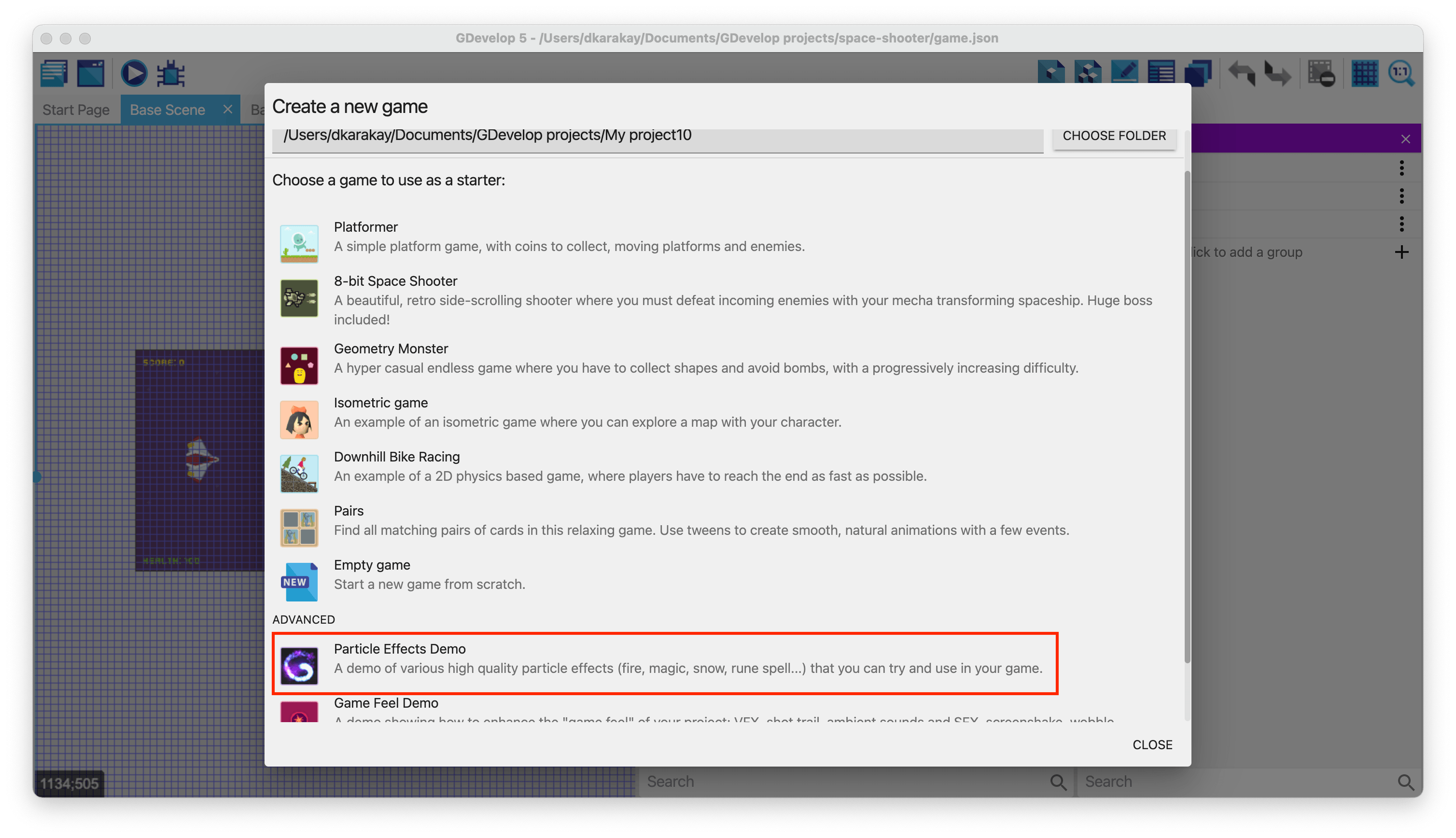 We will use a sample project of GDevelop to copy an explosion effect and put it in our game. Go to File and Create a new project.