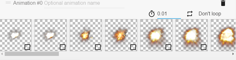 Then, change the time between the images to 0.05 and change the animation to Loop to make the animation repeat.
