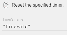 Enter “firerate” as the parameter which is the name of our timer ( again, be aware of the quotes! ).